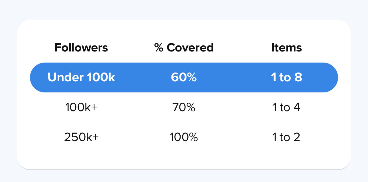 Because you are modeling for us, Absurd covers a large portion of your clothing costs for you, based on your current follower count: